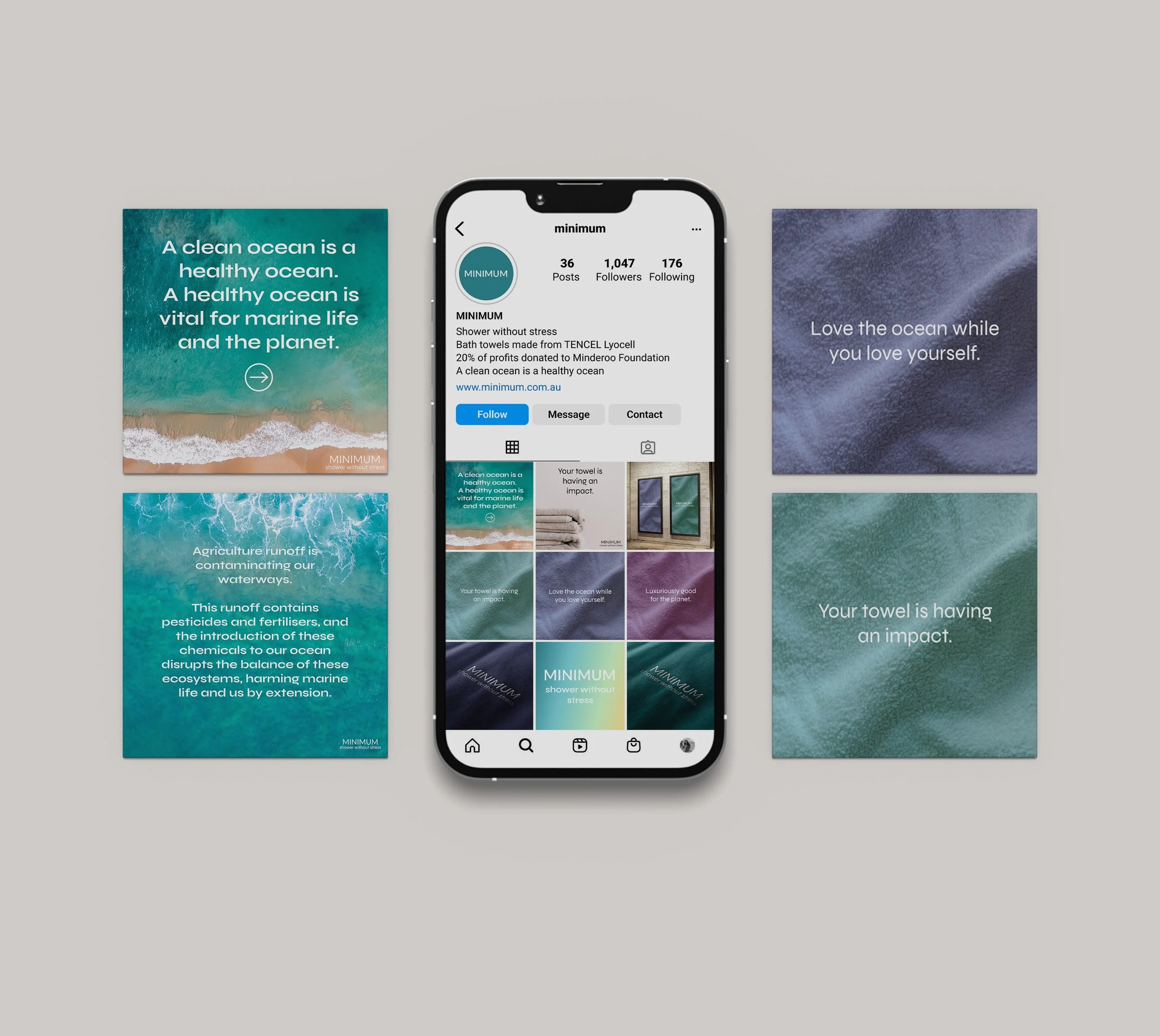 ‘Minimum’ encompasses having the smallest possible impact throughout the entire supply chain. The tagline answers the challenge question and appeals to the consumer’s emotions. The colour palette ties in with the ocean and is bright and hopeful, as our cultural research emphasised that climate optimism is essential in helping ease climate anxiety.